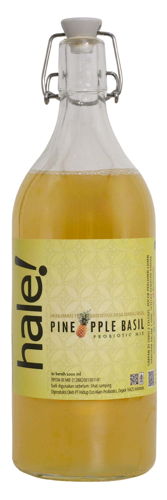 Ingredients: Mineral Water, Cold-pressed Pineapple Juice 15%, Natural Cane Sugar, Fresh Basil Leaves 0.3%, Water Kefir Cultures, Kombucha Cultures, Javanese Oolong Tea 0.1%. No Preservatives. No Synthetic Coloring.